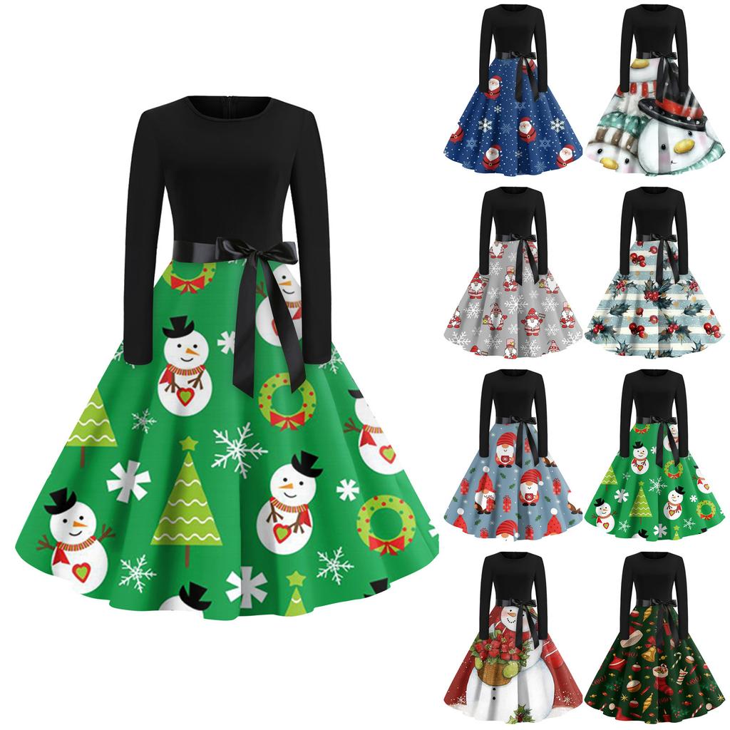 neck/sheer heart neck long sleeve/sleeveless christmas swing dress, have many cute patterns like snowmen, the Santa Claus, deer and so on.