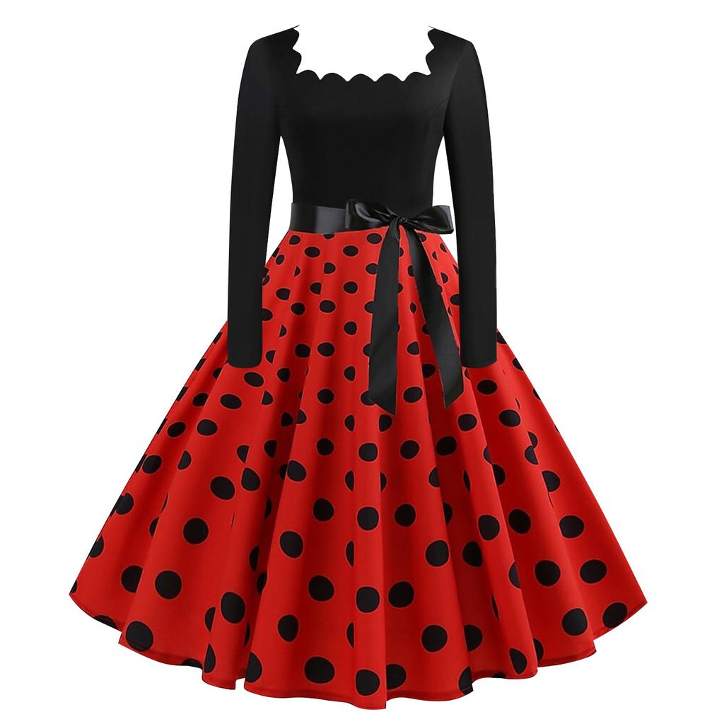 Women's Polka Dot Print Long Sleeve Dress Cutout Party Casual Square Neck Dress