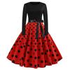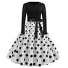 Women's Polka Dot Print Long Sleeve Dress Cutout Party Casual Round Neck Dress