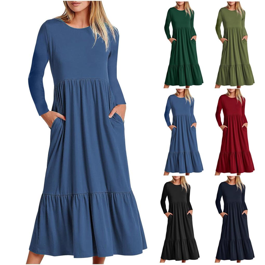 Women's Casual Dress Swing Sundress Flowy Tiered Loose Long Sleeve Maxi Dress With Pockets — buy online with free worldwide shipping!