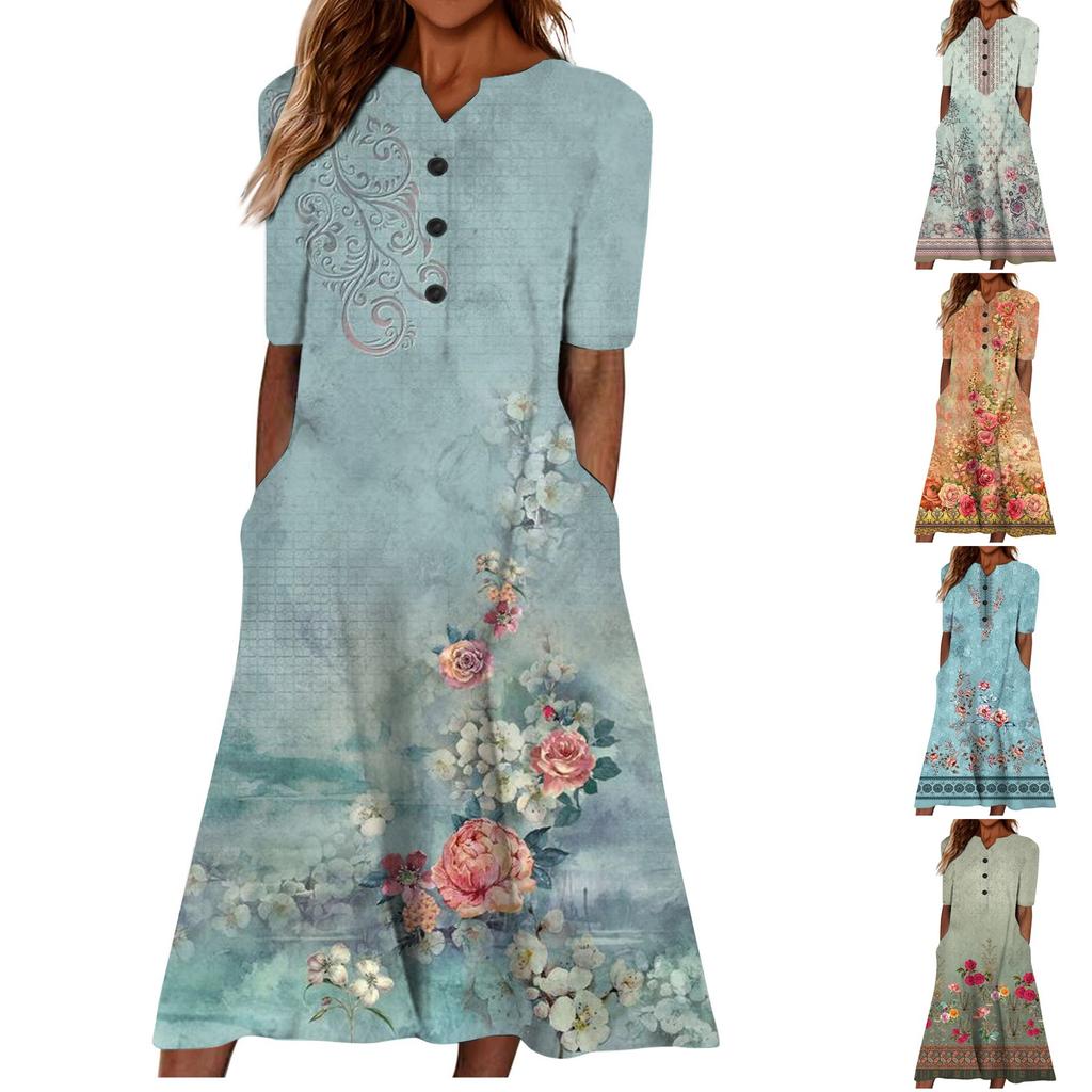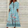 Summer Dress For Women 2023 Casual Printed V-Neck Short-Sleeve Beach Swing Dress