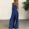 Women's Casual Solid Color Denim Side Pockets Wide Leg Side Button Jumpsuit — buy products online with free worldwide shipping!