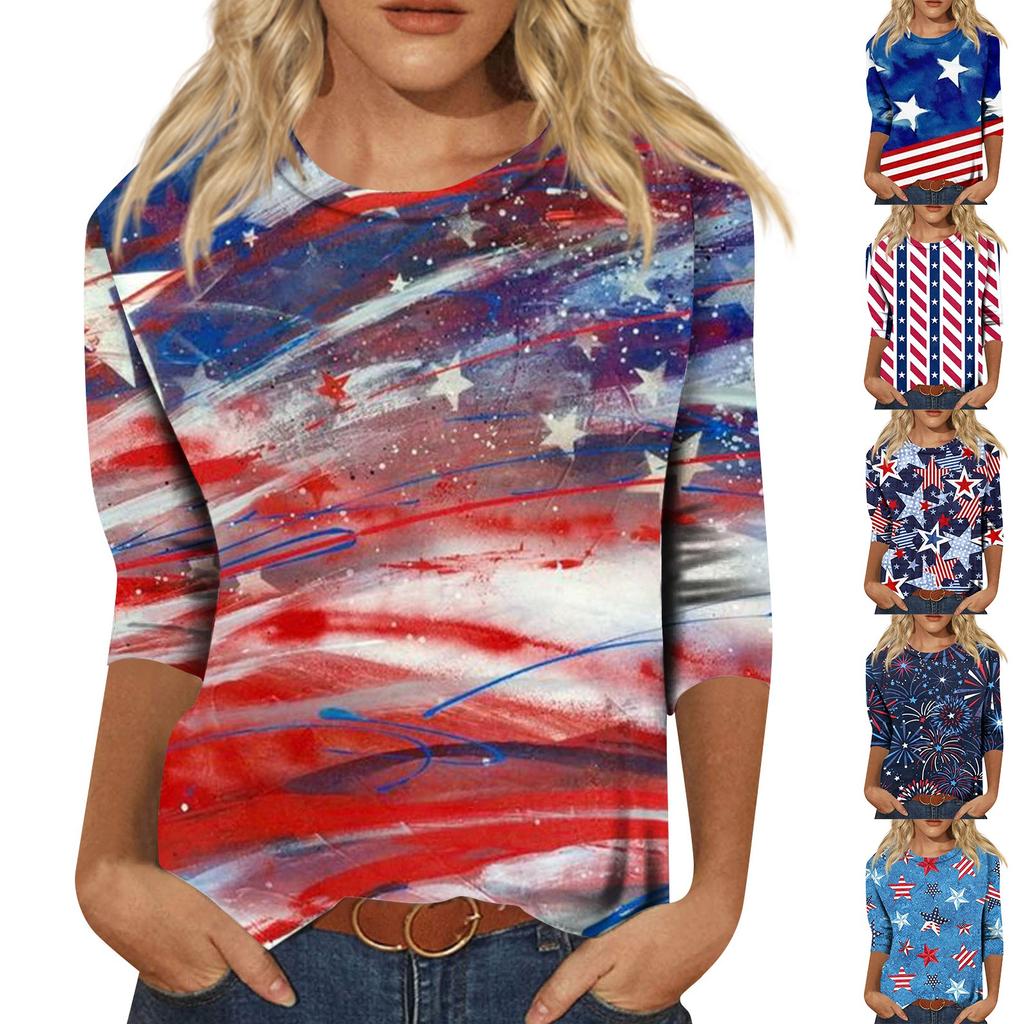 3/4 Sleeve Shirts For Women Cute Tops Graphic Tees Blouses Casual Plus Size Basic Tops Pullover