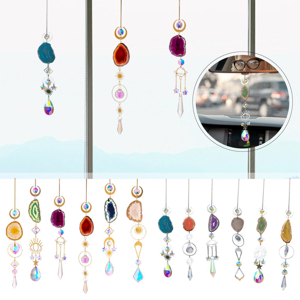 Crystal Sun Catchers - Window Hanging Sun Catchers With Crystals And Agate Slices, Wind Chimes Ornaments Decor For Home Car Window Party Decorations