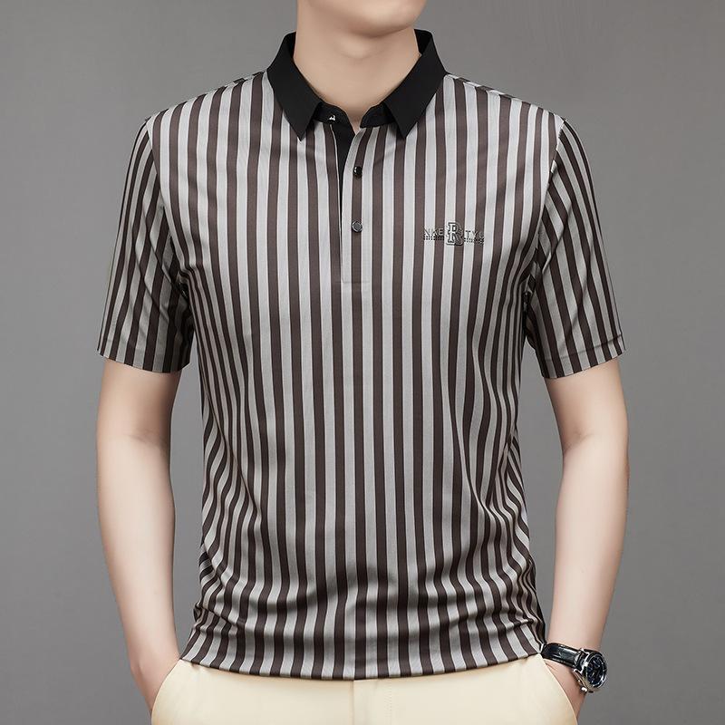 Summer New Men's Cool Striped Polo Shirt Young and Middle-Aged Fashion Casual Short-Sleeved T-shirt Bottoming Shirt Men — buy online with free worldwide shipping!