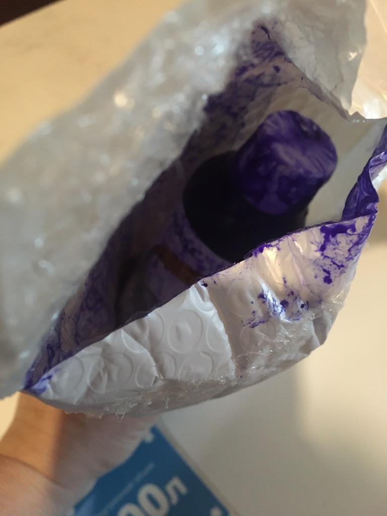 The smell is pleasant. It's a pity that I won't be able to use it... More than half of the bottle spilled in the bag.