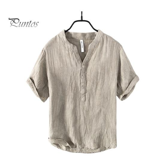 Elevate your style effortlessly with this versatile Men's Linen Top. Crafted from breathable linen fabric, this casual short-sleeved T-shirt features a trendy V-neck design with button details for a touch of retro charm.