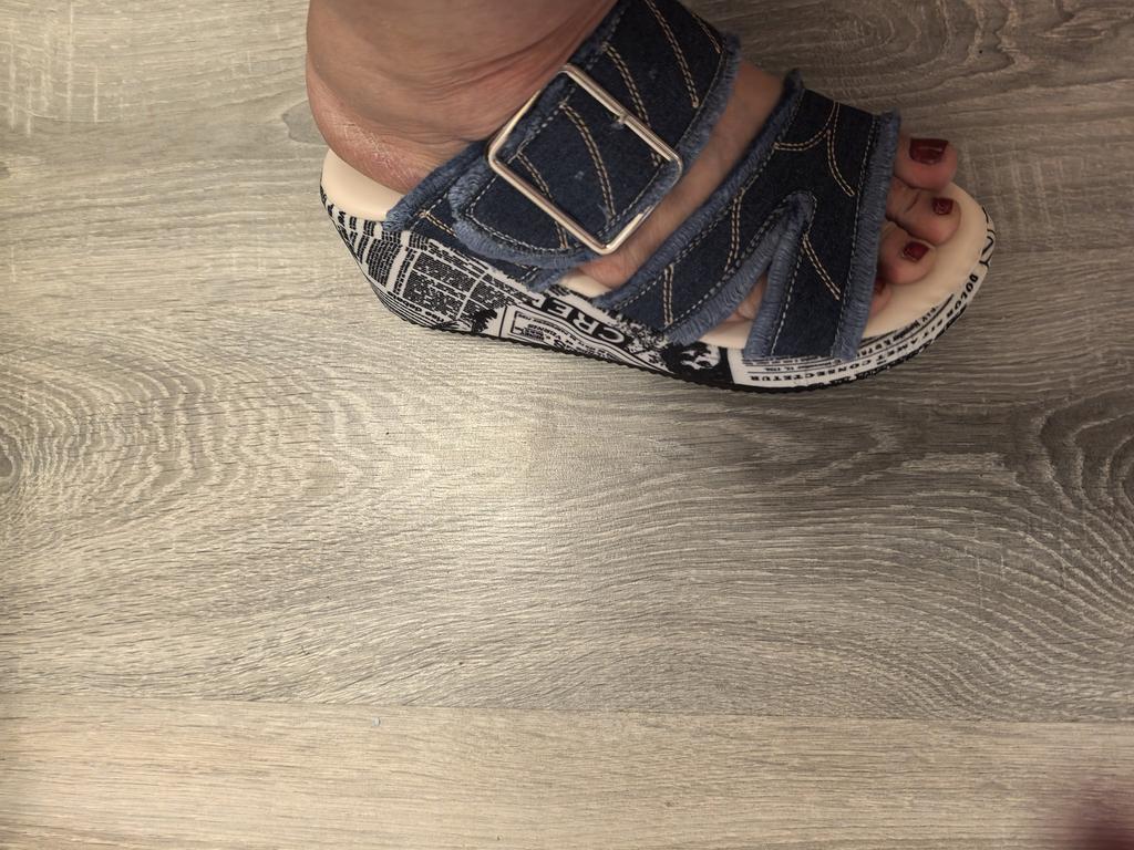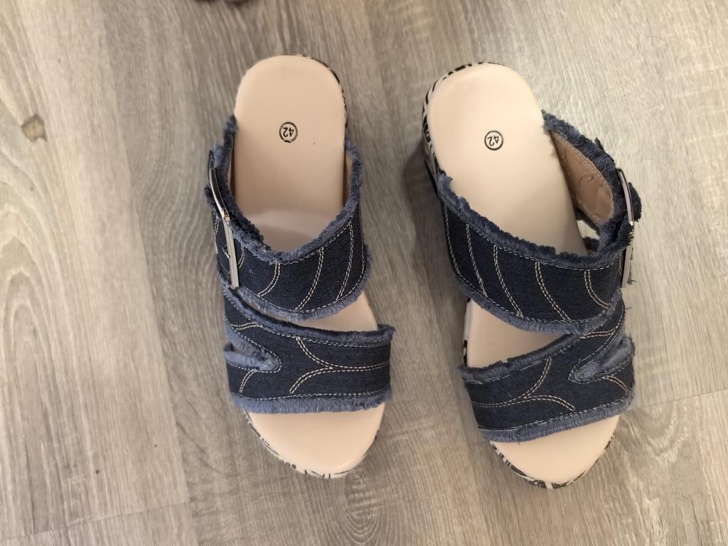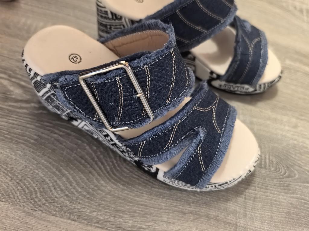 Women Shoes Casual Fashion Vacation Daily Wear Summer Newspaper Buckled Denim Wedge Slippers Sandals — buy online with free worldwide shipping!