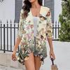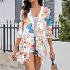 Women's Print Irregular Three-quarter Sleeve Cardigan With Pocket Jacket