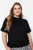 Women's Style Plus Size White Navy Blue Ribbed Collar Boyfriend Knitted T-shirt
