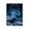 Oriental Retro Neon Canvas Painting Tsuru Sakura Mural Japanese Wave Mount Fuji Samurai Art Poster Print Living Room Home Decor