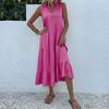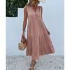 Sleeveless V Neck Casual Summer Women Dress Fashion Loose Elegant Office Ladies Dresses Layered Ruffled Solid A-line Female Dress 922