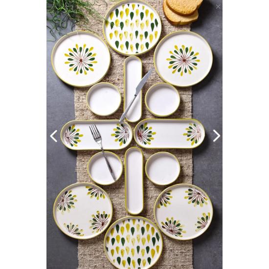 14 Piece Handmade Green Point Breakfast Set for 6 People - Luxury Breakfast Presentation Set