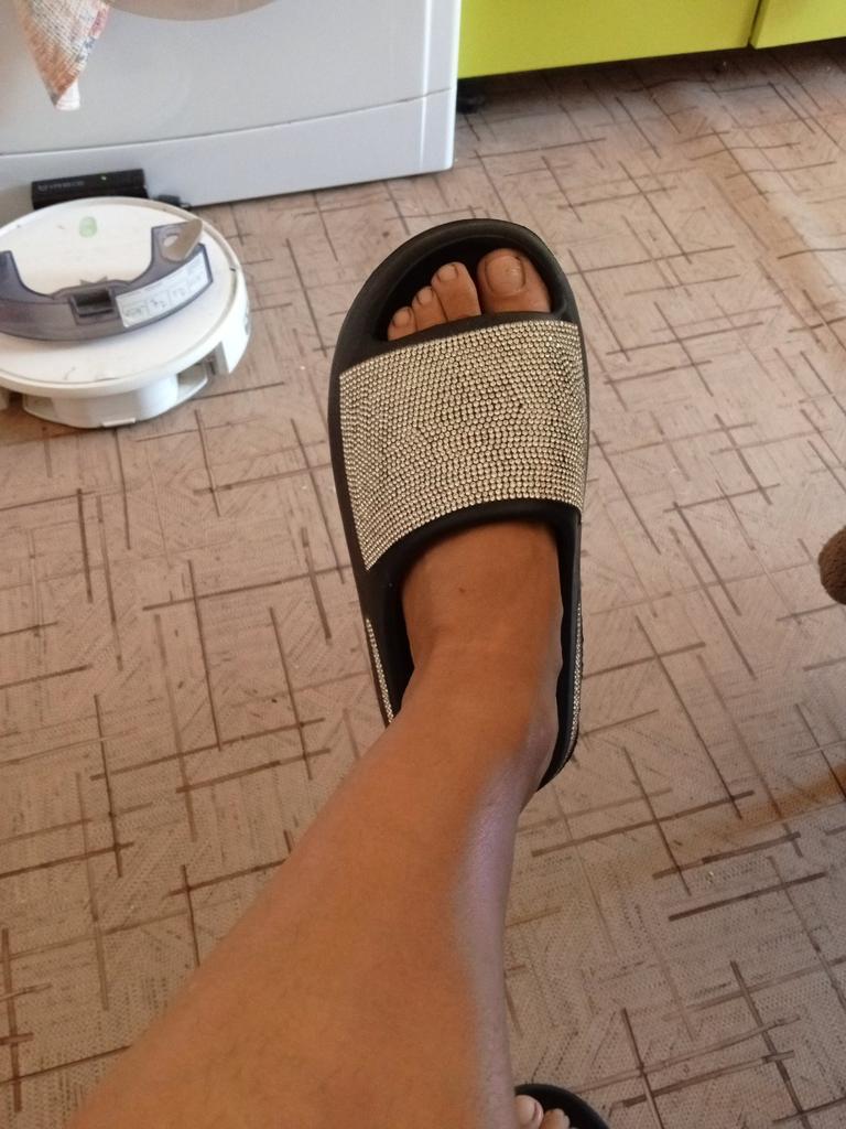 Ordinary flip-flops with glued-on rhinestones. Everything comes unstuck in the heat. For my 38, you need to order 39-40, they run small.
