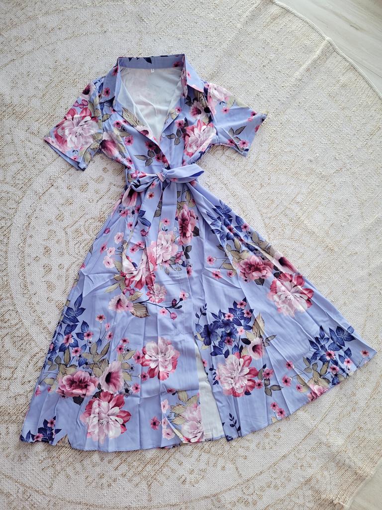 Beautiful maxi dress with buttons along the entire length and a matching belt. Beautiful maxi dress with a high waist and a great floral print in an ethnic style ❣️💋👗👍! Delivery time 🌞: 15 days to Germany. ♻️Scope of delivery: The delivery includes a beautiful dress 👗 in the appropriate color and size. The product is available in 3 different colors. It is available in sizes from S to XXL. I ordered the product in purple in size S and the dress 👗 fits me perfectly and the color is exactly as shown. 🤗🤗🤗👍 I normally wear a size 36 (S). I weigh 55kg and am 167cm tall. 👍👍💥💣. The dress is ideal for me!!! 🌞Quality ♻️: The dress is light and swings beautifully. The dress is opaque and has a beautiful A-line fit. Material composition: 65% polyester, 35% cotton. The fabric is very pleasant on the skin. I think the product 👗 is beautiful 🔝🔝🔝🔝🔝 The dress reaches about my calf. Perfect for summer or a party 👌👌👌 ✳️Summary ✳️: A beautiful maxi dress with the buttons 👗 I would be happy to recommend the product. 5 stars. 🌟!