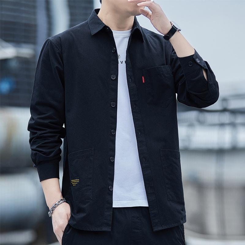 Spring New Long-sleeved Shirt Men's Korean Style Young and Middle-aged Men's Long-sleeved Shirt Casual Solid Color Men's Tops — buy online with free worldwide shipping!