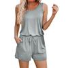 Women's Fashionable Casual Solid Color Vest With Drawstring Strap And Pocket Jumpsuit