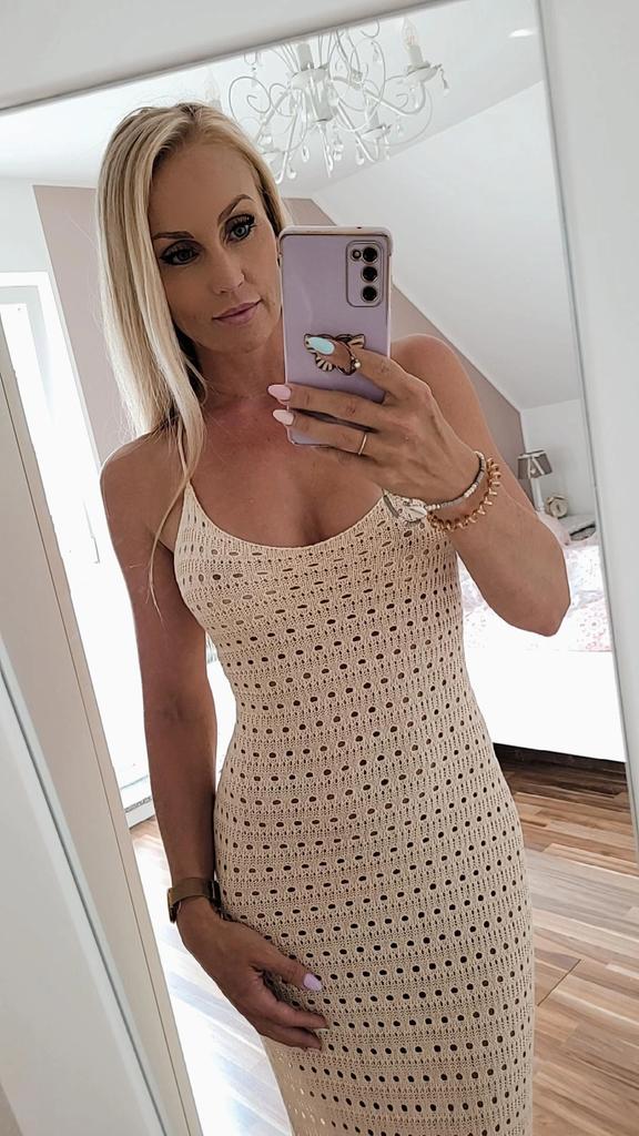 * sexy beach dress with back cleavage * 💥𝗟𝗶𝗲𝗳𝗲𝗿𝘇𝗲𝗶𝘁 About 14 days 💥𝗟𝗶𝗲𝗳𝗲𝗿𝘂𝗺𝗳𝗮𝗻𝗴 The delivery includes 1 dress in the corresponding color and size. The dress is available in sizes S to L. I ordered the dress in size M. I wear size 36 to 38. I weigh 62 kg over 172 cm. Cup size 75D. The dress fits me very well because it is also very stretchy. 💥𝗤𝘂𝗮𝗹𝗶𝘁ä𝘁 The dress is unfortunately not completely opaque... but that is also intended, it has a very interesting hole pattern. The dress is also very stretchy. The straps on the shoulders are subtle and not stretchy... at the end there is a beautiful boho style ruffle. The dress has a beautiful hourglass fit. Even with a slit on one side. I especially like the beautiful back neckline. Simply a dream😍 The décolleté as well as the front and back are beautifully accentuated. For material composition: 100 % Polyester 💥𝗙𝗮𝘇𝗶𝘁 Mega beautiful sexy dress with and awesome back decoration that I can tie individually thanks to the hole pattern (see video) the beach dress has a very nice fit... it adapts perfectly to the figure. You can order the dress in its original size. It runs true to size... or even tends to run a size larger.