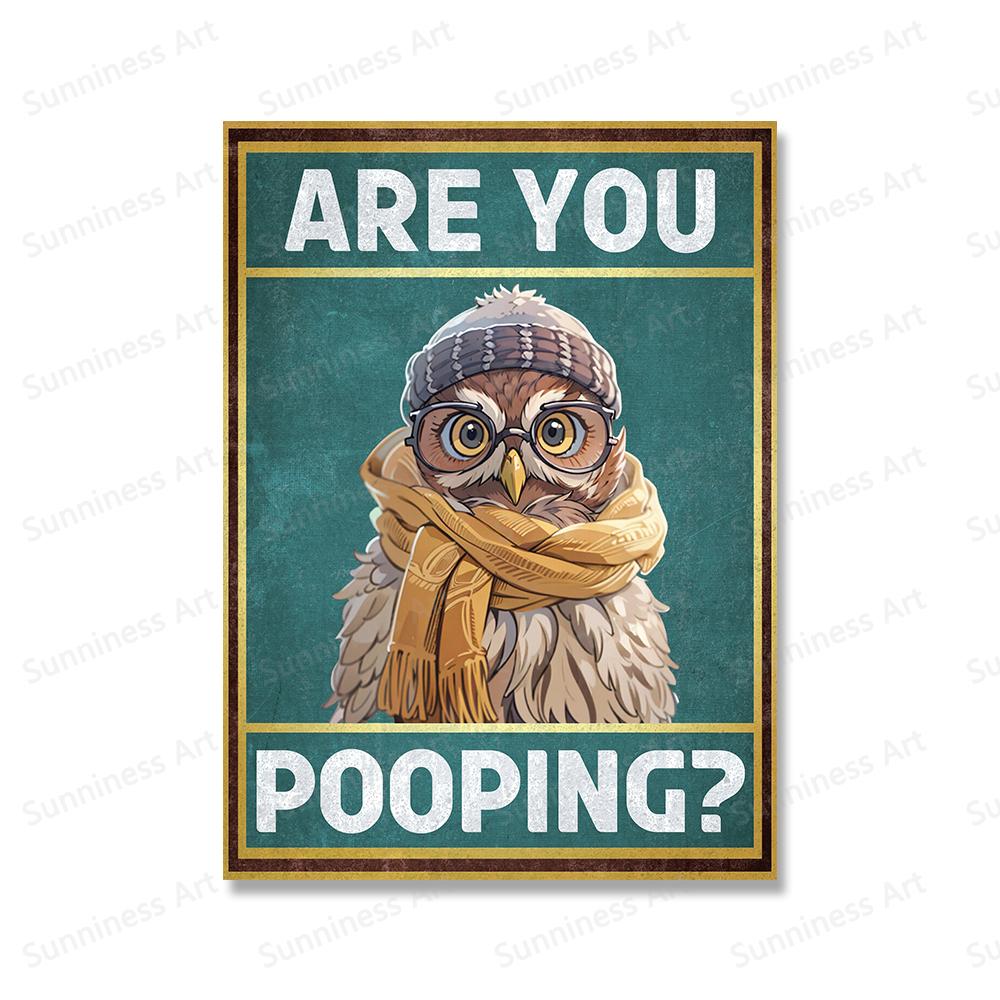 Funny Animals Owl Are You Pooping Poster Bath Decorative Painting Canvas Wall Pictures for Toilet Humorous Kid's Bathroom Decor