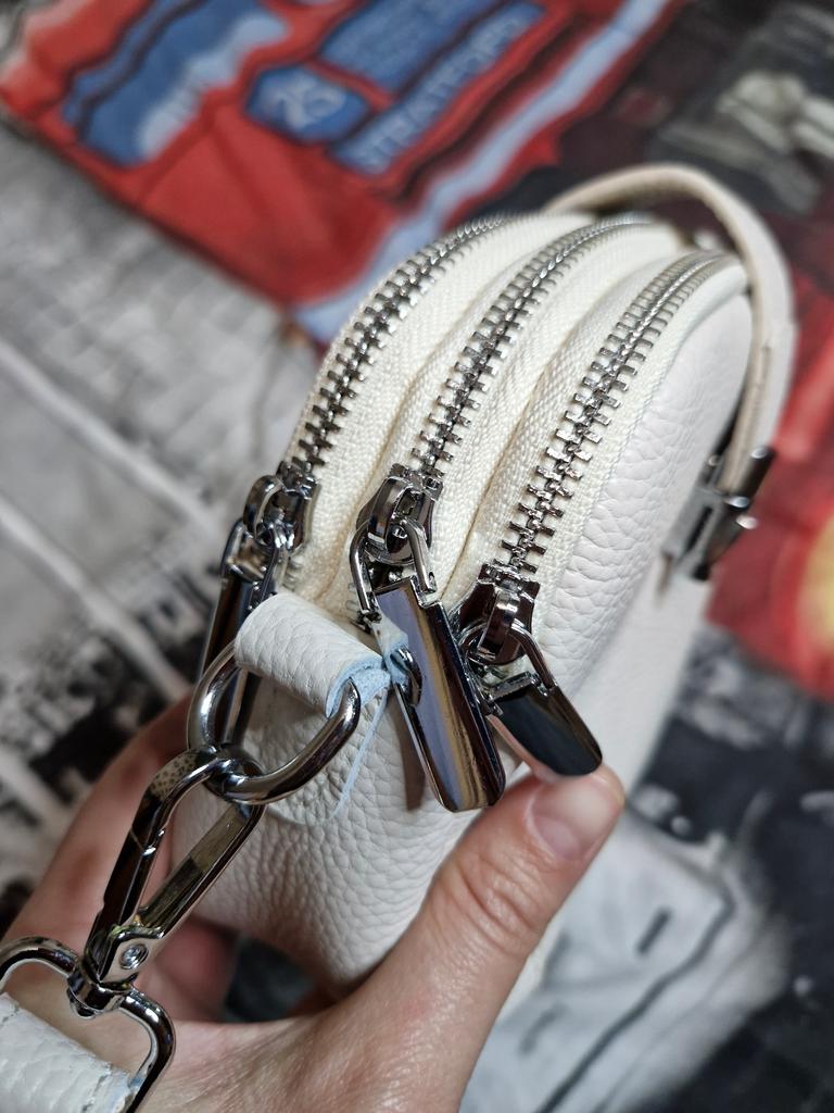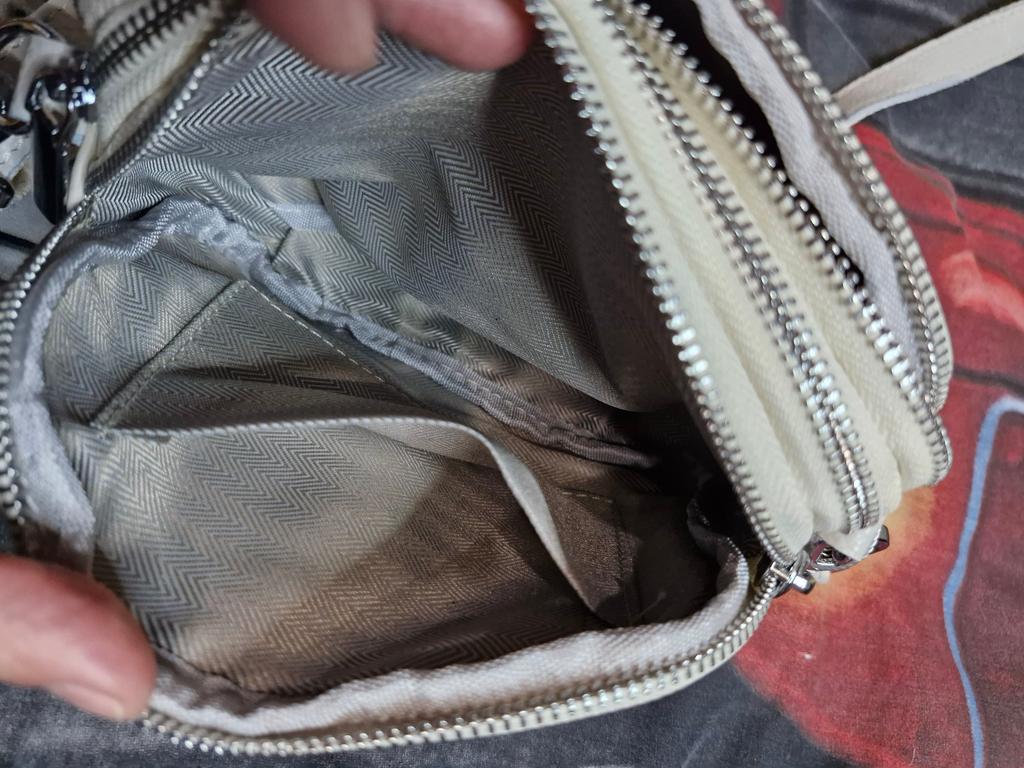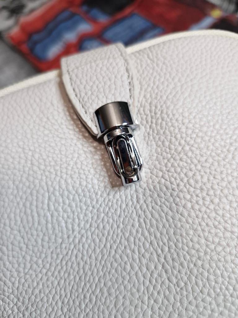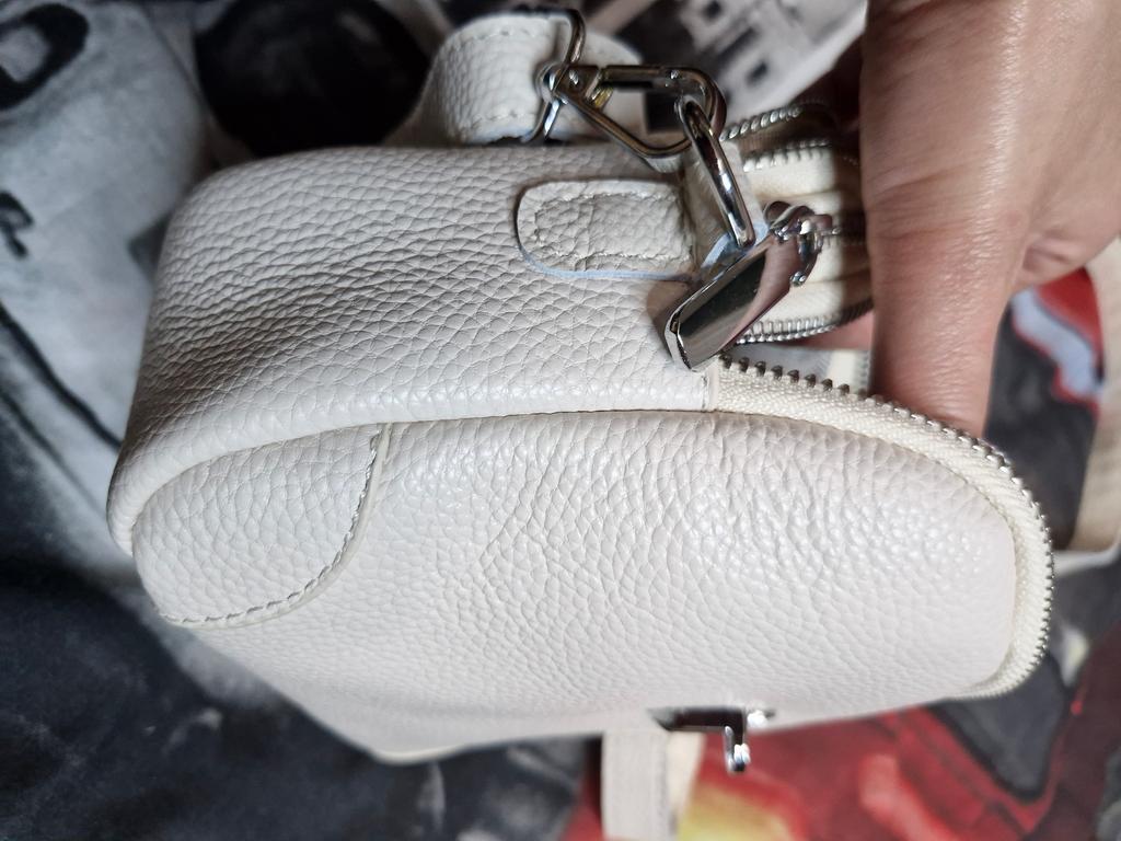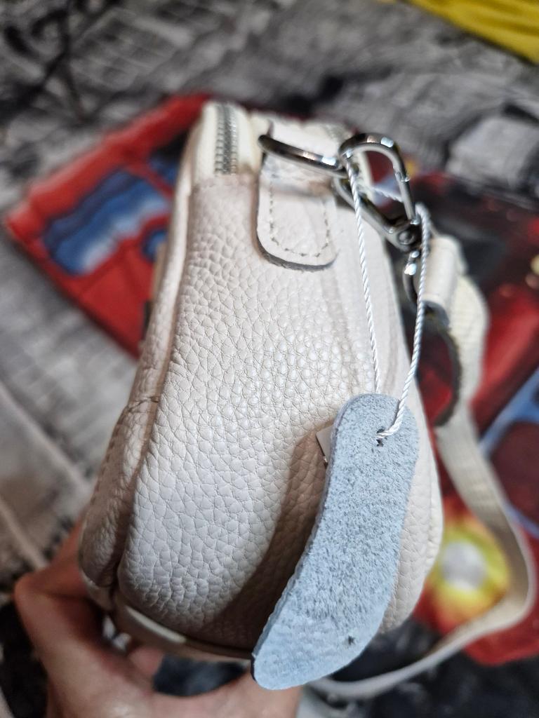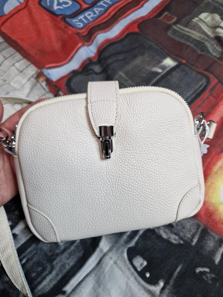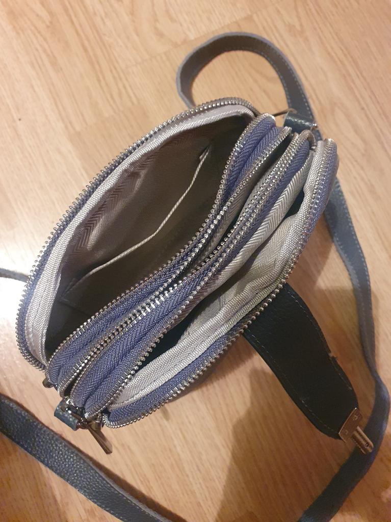 I am very pleased with the bag: small, but very comfortable. It is just a pity that the bag strap is not completely leather.