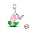 925 Sterling Silver Butterfly Tulip Iris Flower Charms Beads Fit 925 Original Bracelets Fine DIY Valentine Jewelry Gifts