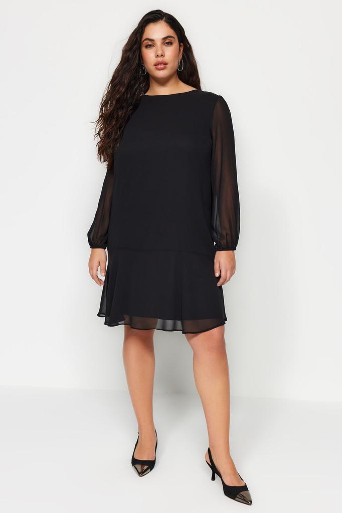 Women's Style Plus Size Dress Black Mini Woven Dress