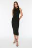 Women's Style Dress Mink Ruffle Detailed Ribbed Bodycone Fitted Midi Smart Flexible Knitted Pencil Dress