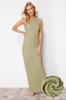 Women's Style Dress Black Textured Fabric Fitted Moon Sleeve Knitted Stretchy Midi Pencil Dress