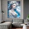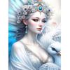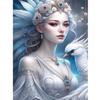 White Peacock and Girl 5D Full Round Diamond Painting Kits Zen Art Buddhist Sculpture DIY Drills Mosaic Embroidery Cross-stitch J3954