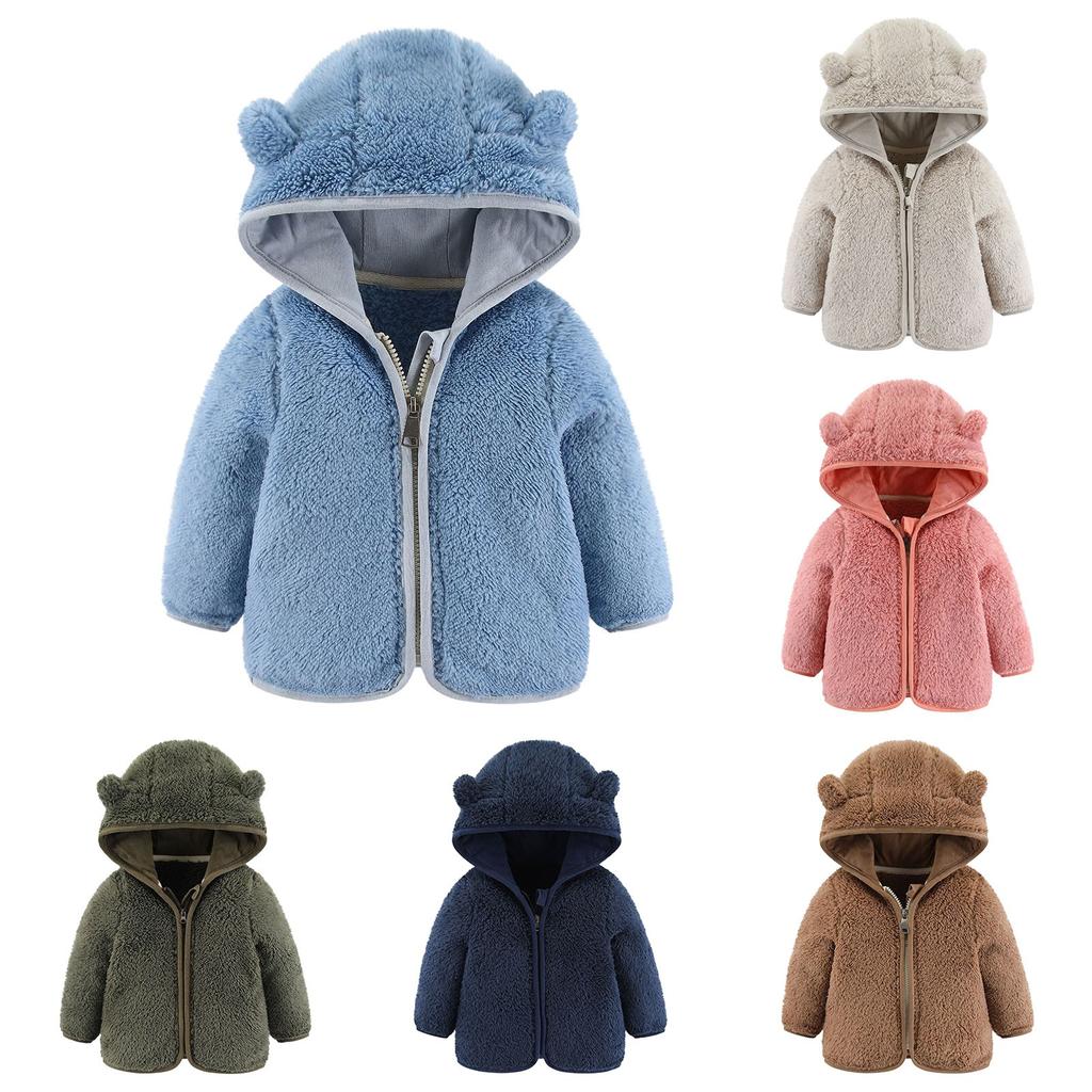 Kids Fashion Casual Long Sleeve Plush Top Solid Color Children Hooded Outerwear — buy online with free worldwide shipping!