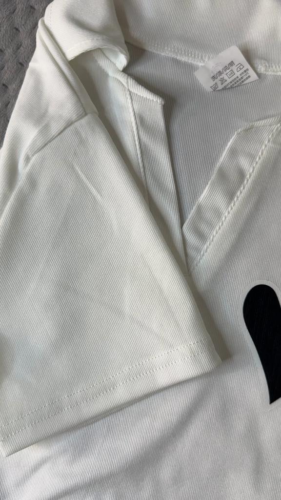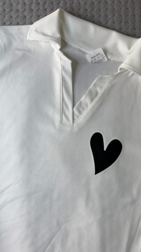 Loves Embroidery T-shirt Polo Collar Orthoshoulder Slim Hotsweet Women's Crop Top Korean Fashion Hottie Simple Casual — buy online with free worldwide shipping!