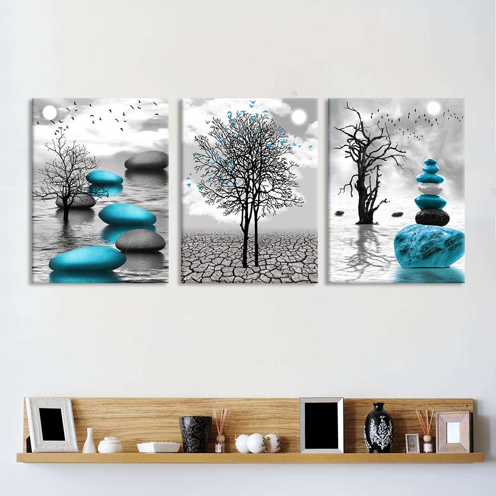 Modern Black and White Landscape Canvas Painting Blue Zen Stone Posters and Prints, Tree Art for Living Room Decoration Unframed — buy online with free worldwide shipping!