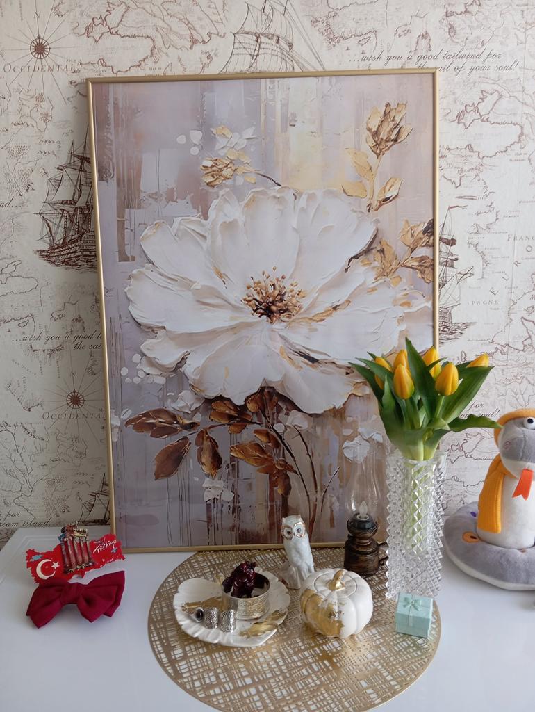 Abstract White Flower Oil Painting Printed on Canvas, Luxury Flower Posters and Prints Floral Wall Art Porch Living Room Decor — buy online with free worldwide shipping!