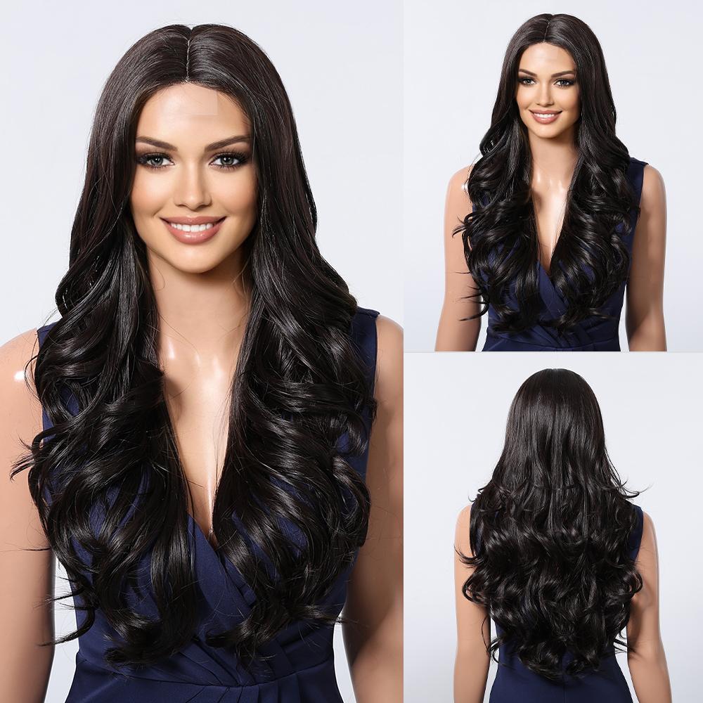 CharmSource Hairline Lace Synthetic Wigs Black Long Wavy Ladies Wig for Women's Cosplay High Density Heat Resistant Fiber — buy online with free worldwide shipping!