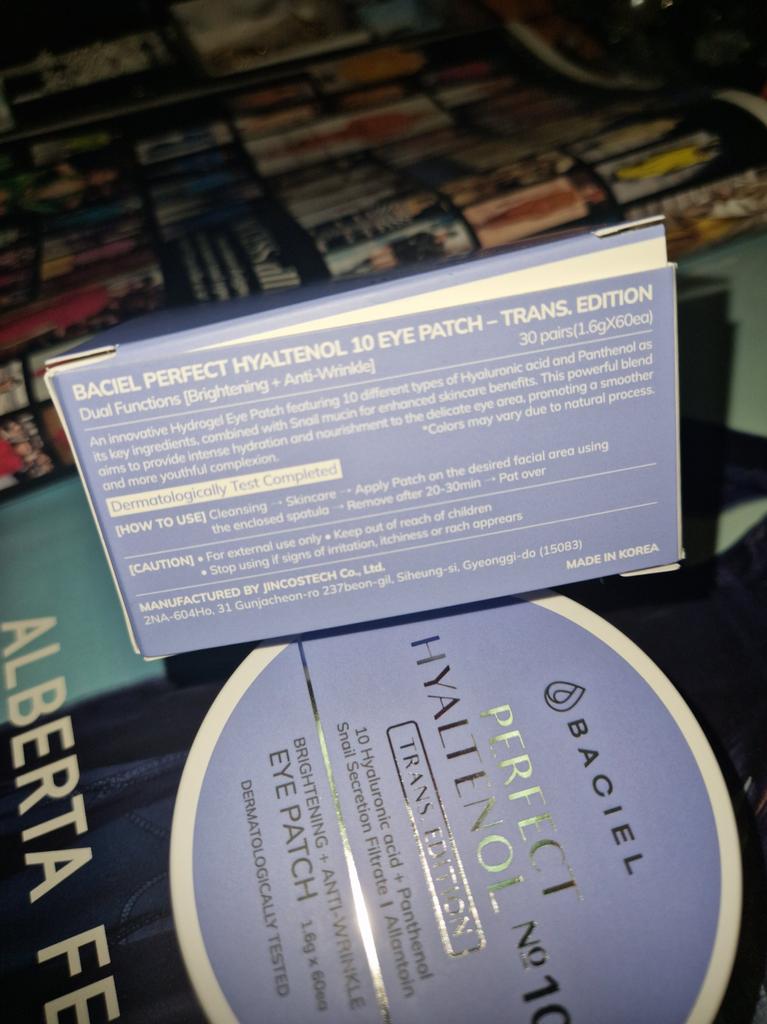 Perfect korean hydrogel eye patches.Shop Baciel,in the jar 60 pairs(30 days),came with little plastic spoon. Functions: # Hydration # Nutrition # reducing appearance of fine lines # has cooling effect with reduction of puffiness Best time to use it is at night.Leave it for 3-4 hours or if you don't have that time then can use during the day 20-30 minutes Didn't cause any reason,easy to use,they have lots of serum around them,have slight pleasant scent.Delivery took 18 days to Ireland.Happy Shopping!
