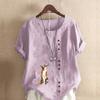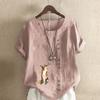 Women's Fashion Round Neck Short Sleeve T-shirt Casual Cotton Linen Graphic Shirt Leisure Loose Fox Prined Summer Blouse Tops — buy online with free worldwide shipping!