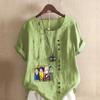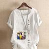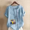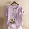Women's Fashion Cartoon Characters Prined Round Neck Short Sleeve T-shirt Casual Cotton Linen Graphic Shirt Leisure Loose Summer Blouse Tops