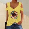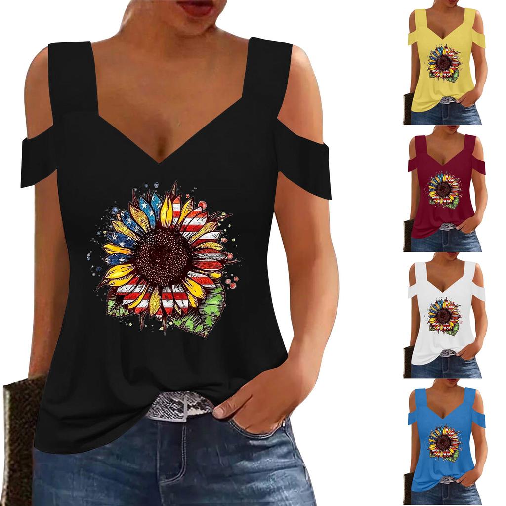 Summer Top Women's Top Short Sleeved Cold Shoulder V-neck Loose Basic T-shirt Casual Top Shirt Shirt