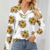 Women's Fashion Leisure Long Sleeve V Neck Flower Printing Top