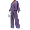 Design: This ensemble features a chic V-neck tie design on the long-sleeve top, adding a touch of sophistication to your outfit. The loose-fitting top pairs perfectly with the elastic waist pants, providing a versatile and flattering silhouette for all body types.
