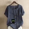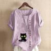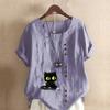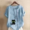 Women's Fashion Round Neck Short Sleeve T-shirt Casual Cotton Linen Graphic Shirt Leisure Loose Black Cat Prined Summer Blouse Tops — buy online with free worldwide shipping!
