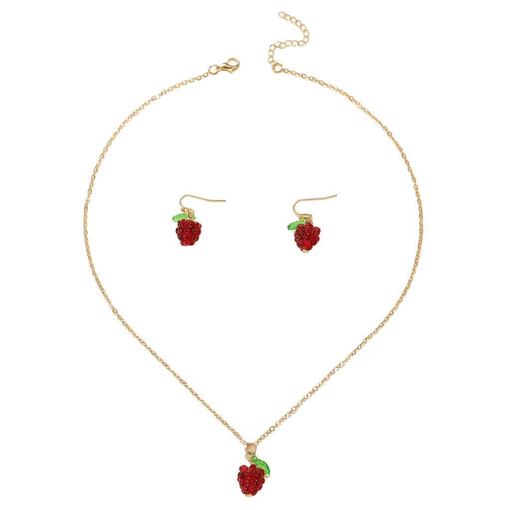 Raspberry Charm Jewelry Set for Women Fashionable Alloy Necklace and Earrings Fruit Theme Accessories for Daily Wear — buy online with free worldwide shipping!