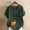 Women's Fashion Round Neck Short Sleeve T-shirt Casual Cotton Linen Graphic Shirt Flower Prined Summer Blouse Tops Plus Size — buy online with free worldwide shipping!