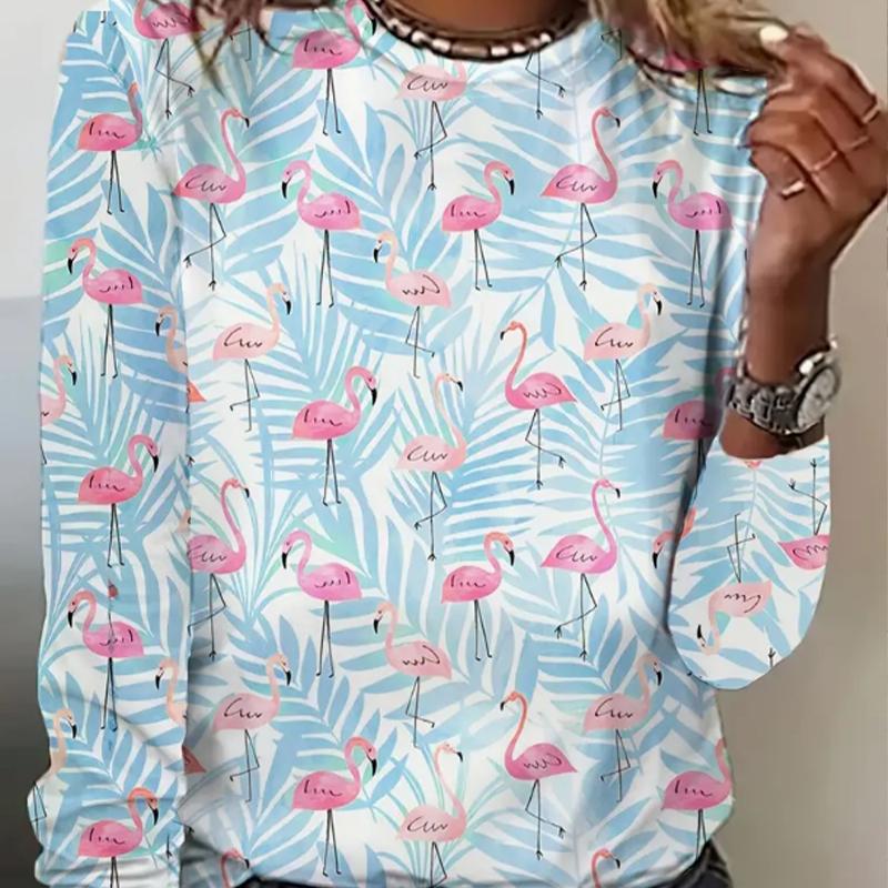 Tops For Women Animals and Birds Print Round Neck Long Sleeve T-shirt Fall Casual Slim Pullover Women's Long Sleeve Top — buy online with free worldwide shipping!