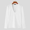 INCERUN Men V Necl Solid Color Long Sleeve Knitted Tops Muscle Fitted Pullovers