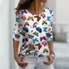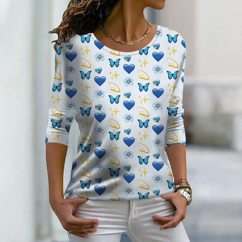 Women Autumn Tops Loose Multicolored Butterfly Print Causal Long Sleeve T-shirt Top Blouse