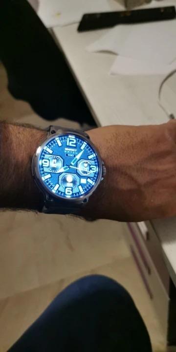 The screen of this product is very large. It is described as having a size of 1.85. I have a large wrist and this screen fits me very well. It is very clear and visible. It has a very manly, very hardcore feel.
