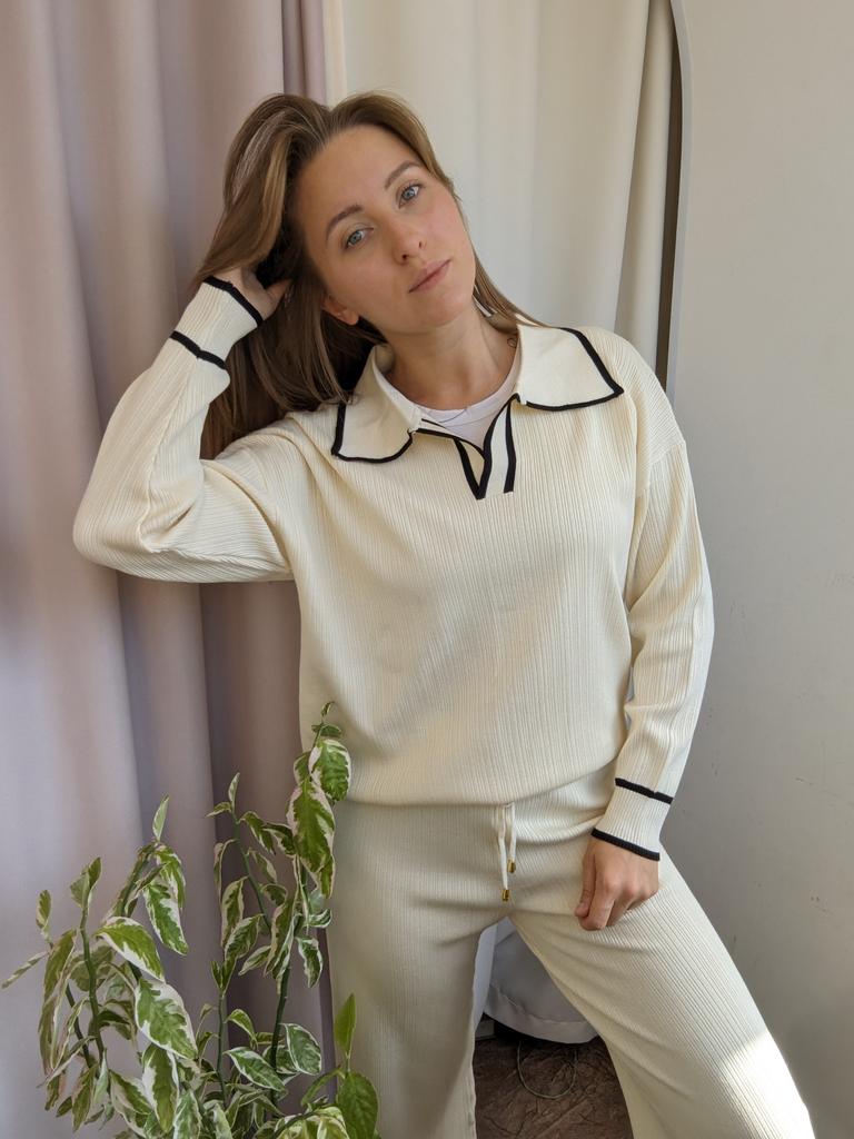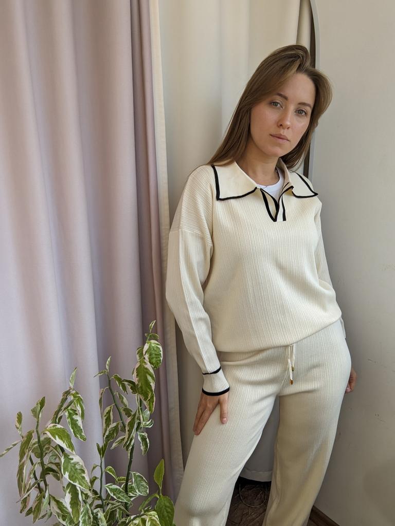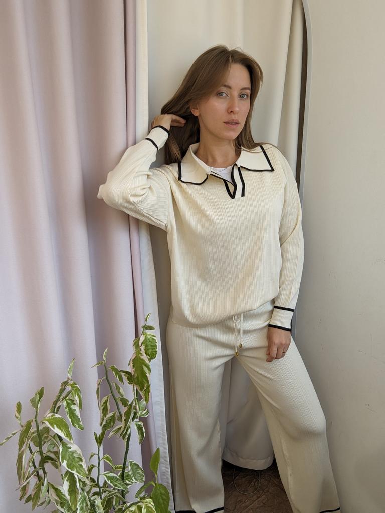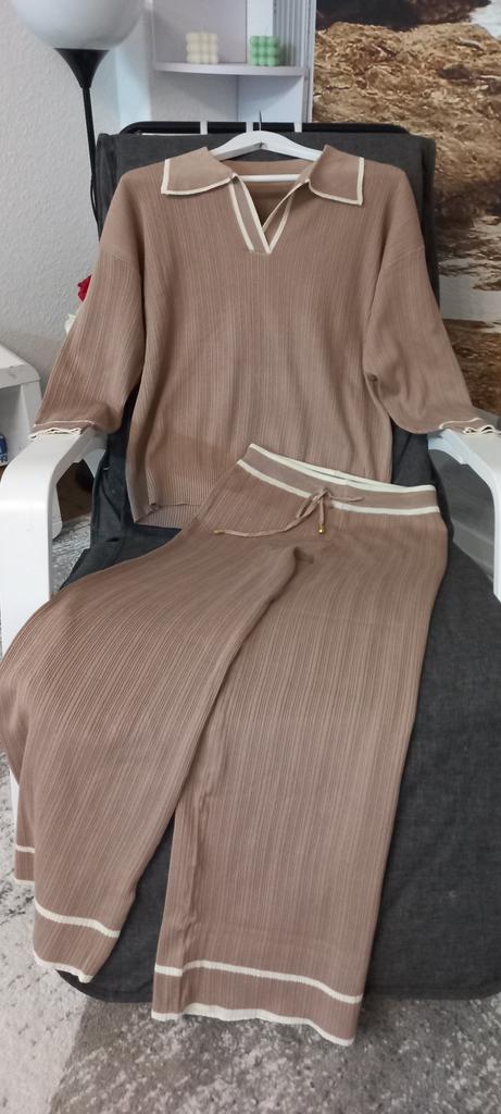 TWO PIECE SET with V-neck 👕👖 🔆 🔆Delivery time 🔆: 17 days to Germany. 🔆Scope of delivery 🔆: The delivery includes a trouser set, consisting of 2 parts,👕👖 in the appropriate color and size. The set is available in 5 different colors. It is available in one size . I ordered it in khaki and the set 👕👖fits me perfectly and the color is exactly as pictured! I normally wear a size 36. I weigh 55kg and am 167cm tall. My measurements are 90-65-90cm. The size of the suit is one size. (The manufacturer states: chest 102cm, waist 64 cm, hips 102.) The top has a V-neck, which looks really nice! 🔆Quality 🔆: The set is of excellent quality, casual and opaque. , with wide pants. About the material composition: 70% viscose, 30% acrylic. Unfortunately I didn't find a label, but you can understand that the material is a mixture of viscose and acrylic, which is stated in the manufacturer's description . ⬆️⬆️⬆️In summary, it is a beautiful short-sleeved two-piece 👕👖 that is suitable for all seasons 👍👍🔝 Thank you Joom and the seller! 5 stars! 🌟 I would happily recommend the suit!👍👕👖