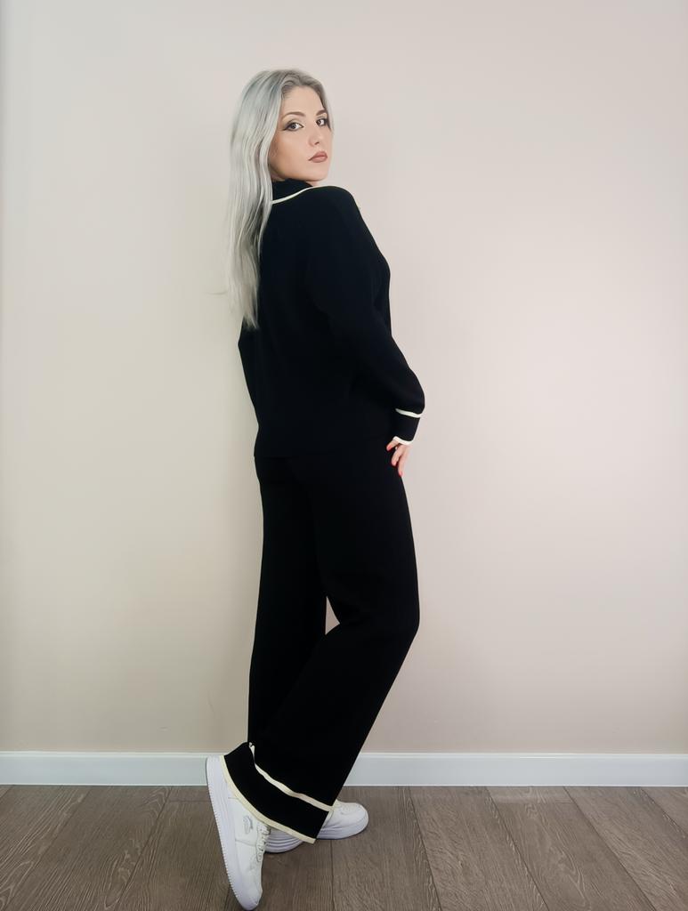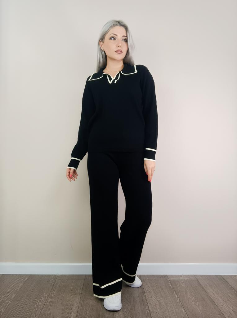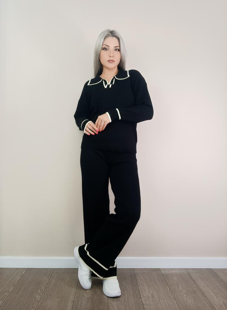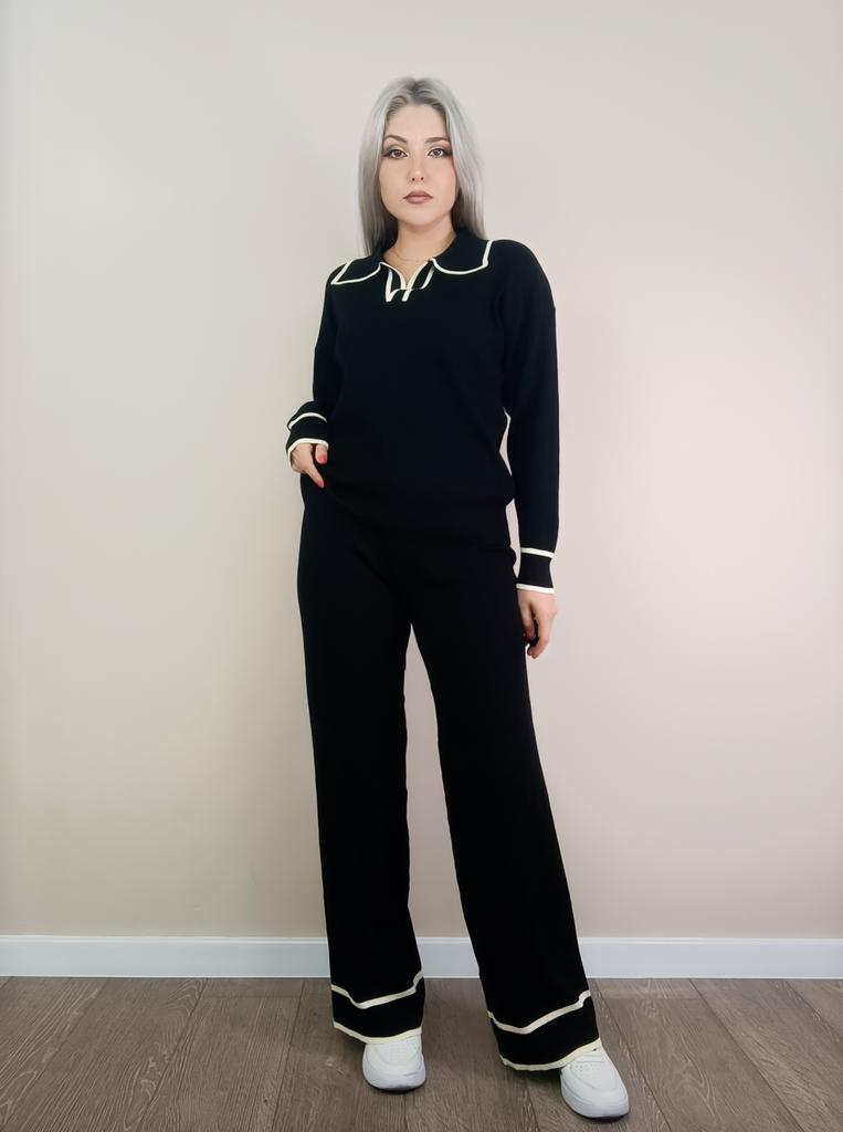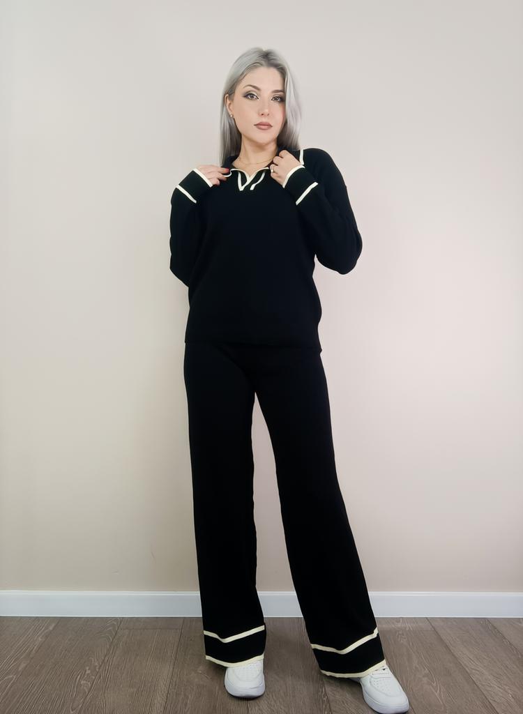 Fall Winter Lazy Wind Loose V Collar Pulllover Sweater Suit Women's Solid Color Long Sleeve Knit Wide Leg Pants Two Piece Set — buy online with free worldwide shipping!