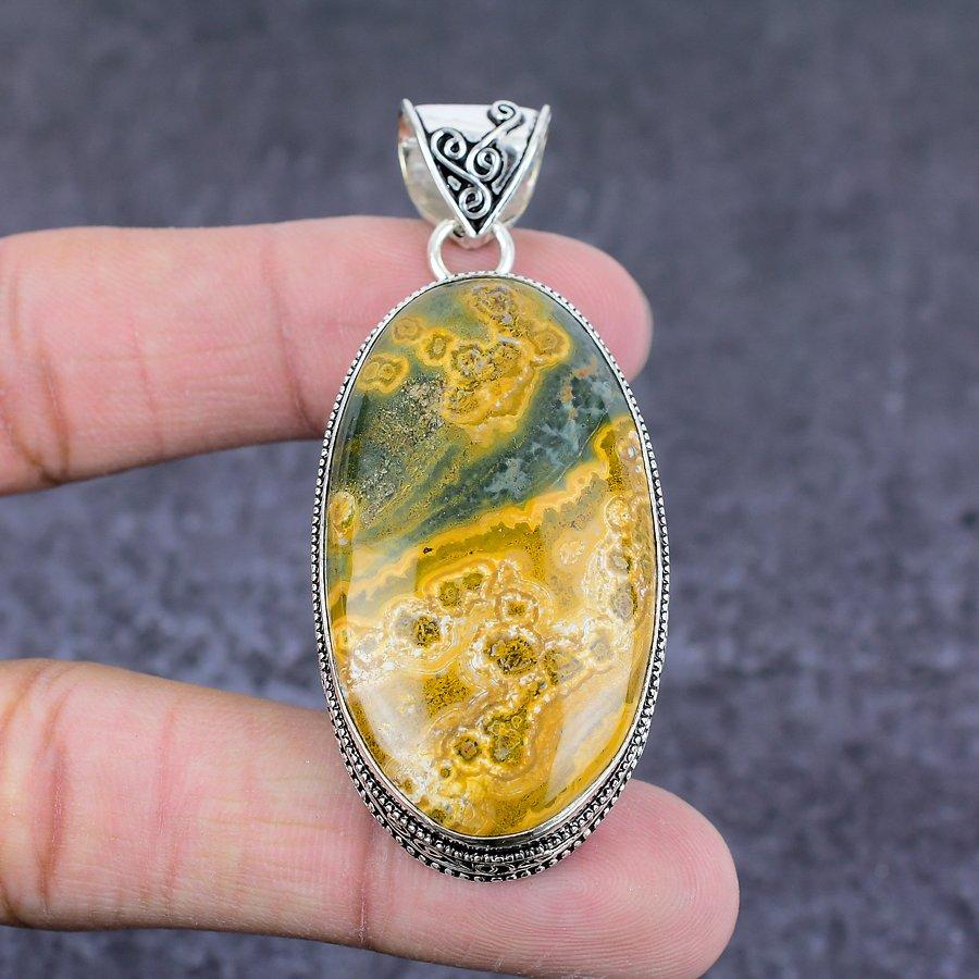 Ocean Jasper Gemstone Handmade 925 Sterling Silver Jewelry Pendant 2.64"